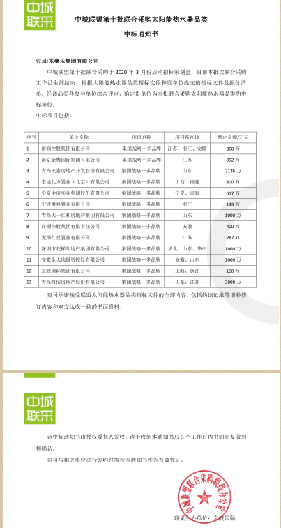 熱烈祝賀桑樂集團中標“中城聯盟”戰略集采