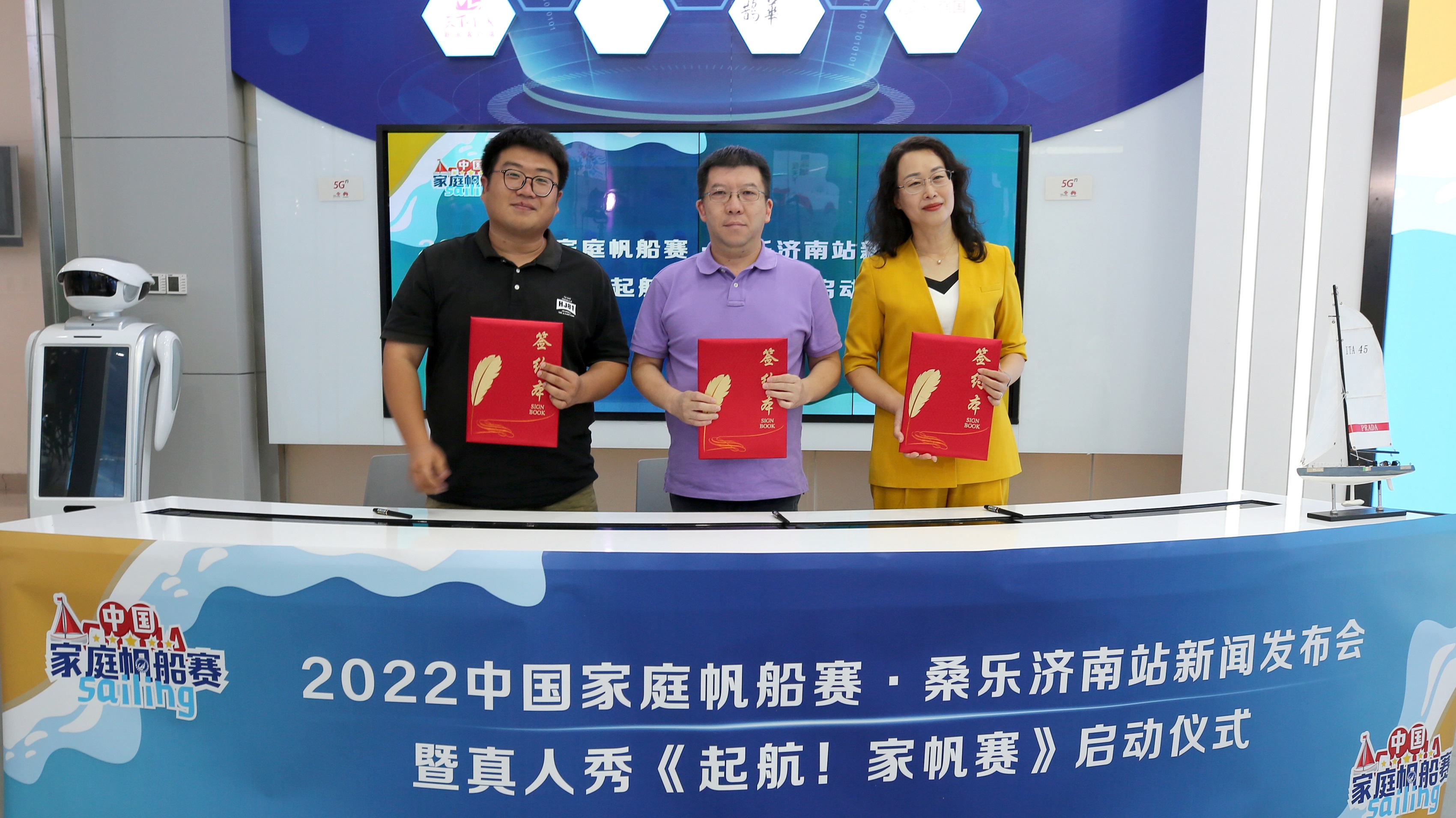 儀式現場,集團領導與濟南市帆船帆板運動協會會長劉蕾、山東亞斯體育產業負責人楊沛寧一同進行了賽事冠名單位的簽約。濟南文旅體育頻道,將在家帆賽舉辦期間發揮主流媒體優勢,利用全媒體傳播手段,打造濟南帆船賽事IP。